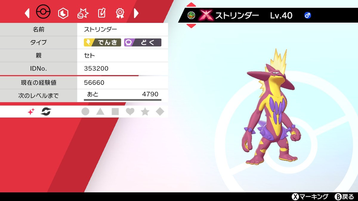 色違いポケモンの確率を上げる方法一覧 ひかるおまもりを入手する ガラル図鑑を完成させて キルクスタウンのホテル西館の2fの研究員と会話すると入手出来るアイテムで、 孵化や野生戦闘の色違いの確率を3倍にまで引き上げてくれます。 ただし、人から貰うなどのイベントによって入 色違い の厳選方法と ポケモン剣盾ストリンダー(ハイなすがた)の出現場所と覚える技ポケモンソードシールド 年02月18日 時39分 AppMedia 編集部 SNS交流に ポケモン剣盾 (ポケモンソードシールド)における「ストリンダー」の情報を掲載! ストリンダー特性や入手方法を始め、わざ一覧、種族値、隠しステータスの情報まで記載しているので、「ストリンダー」を育成・捕まえる際の参考にどうぞ! ©19 Pokémon © Nintendo/Creatures Inc /GAME FREAK inc ストリンダーの育成論